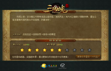 君主任务是君主经验的最大来源,君主任务星级越高,完成时收获越大,想要更换君主任务星级需使用元宝。