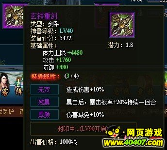 特殊属性需神器达到XX等级才会开启。未开启前,特殊属性处使用文字替代“封印中…(LV 15 开启)”