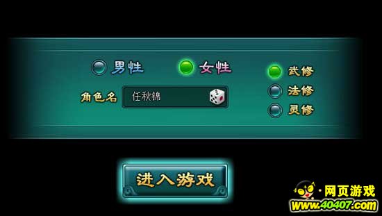 点击进入4399《真武封神》游戏之后,我们需要创建角色。登陆界面:性别,名称,职业三大选择