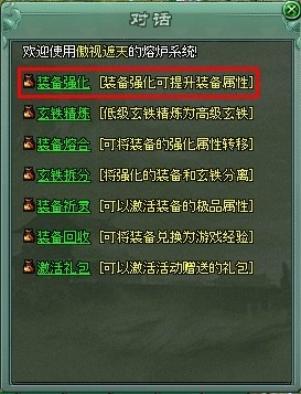 傲视遮天前期升级,后期pk。那么强化装备的重要性不言而喻,随便强化到三一般都有2%生命值的加成,基本上现在出门装备没强化过的真不好意思和别人打招呼呀。说到强化前的准备,需要强化到4就要准备1品2品3品4品的石头至少每样一个,强化1就需要消耗1个1品石头,成功率为90%,一般无风险;从强化1继续强化成2,就要刚才的基础上消耗1个2品的石头,成功率为80%,依此类推,基本到强化4,强化5之后就建议使用成功率加成符,可以增加成功率。