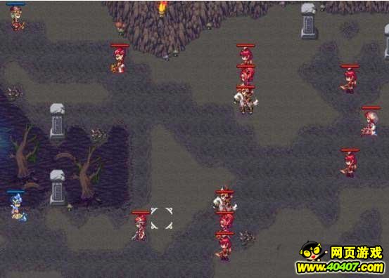 1、敌方:如上图所示,敌方士兵依次分布为1个火魔法师精英(上)、1个盾战士精英(下), 往右上下各有1个疾风弓骑、1个火魔法师、1个弓箭手,最后是2个弓箭手和1个祭祀(首领)。