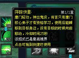 我是过来人,这个技能无论逃命,追杀都是上上之选,是我个人在PK中最爱的一个技能,只要你们慢慢琢磨,相信你们很快就会爱上这个‘萍踪侠影’。