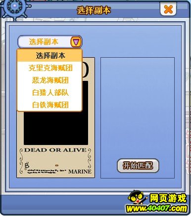 进去之后有四个副本可以供玩家选择,分别为克里克海贼团、恶龙海贼团、白猎人部队、白铁海贼团,玩家可以随便选中一个,然后点击开始匹配,匹配多人玩家副本是需要一定的时间,所以玩家稍后便可。进入之后,会有数名玩家一起出现在副本之中,和单人副本一样,通过随机摇取点数进行移动,只不过这里碰见玩家的话,就会发生争斗,打不过对方的话就只有让出道来,退避三舍了。