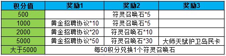 3.积分累计达到5000积分以上,每50积分可以用来兑换1个符灵召唤石,积分越多可兑换越多