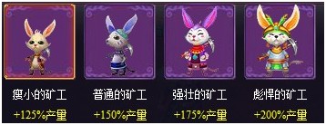 当你进入晶矿之战副本之中,点击【开始挖矿】按钮,就可以选择矿工为你挖矿。不过因为身体强弱的关系,矿工也有胖瘦之分,有瘦小的矿工、普通的矿工、强壮的矿工、彪悍的矿工,当然是越强壮的矿工产出越多咯!