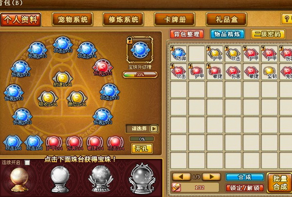 最关关键的还是宝珠的获取途径。目前玩家们获得宝珠的途径有几种,最主要是副本,其次是使用点券来刷宝珠,另外还有获得少量宝珠的办法,就是VIP奖励。使用点券刷宝珠这里不做详细介绍,VIP奖励获得的宝珠也只有每天一个,而且多是9级以下的,并非宝珠的主流途径。