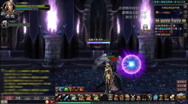 幽暗阴森的烛光突显出整个圣殿的诡异,穿过冗长的怪物走廊,消灭了密集的小怪以后。就会在第8层遇到黑暗圣殿中的第一个BOSS,黑暗天使——凯奇。据说他和光明圣殿的首个BOSS大天使长是孪生兄弟,只是性格偏执成为了堕落的黑暗天使,但是虽然堕落,但是他的风与黑暗双系魔法,是您挑战之路上一块坚硬的绊脚石。