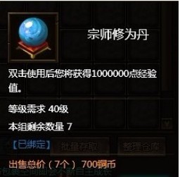 值得提醒一下的是,在60级前,每天从丹药获得的经验是有上限的,为700万经验。万寿修为丹是人手一个,独一无二的,建议59级升60级的时候用...原因嘛!!!60级可以换新装备了啊!