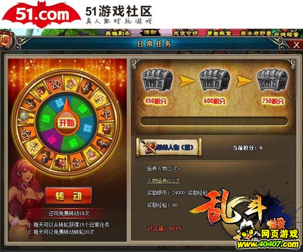 任务也分为三种品质,根据品质的不同获得的积分也不同,三种任务分别获得:30、40、50点积分。既然各位玩家把每天15次的转盘任务都做完了,那获得的积分当然要用去换宝箱啦。打开宝箱需要达到450点积分以上才可以打开,若你积分已经超过了450点,那你也可以打开600、750点积分的宝箱。当然,打开宝箱需要的积分越多,开出来的物品价值也会越高。做转盘任务除了可以获得积分换取宝箱以外,还可以获得银币和经验的奖励哦!