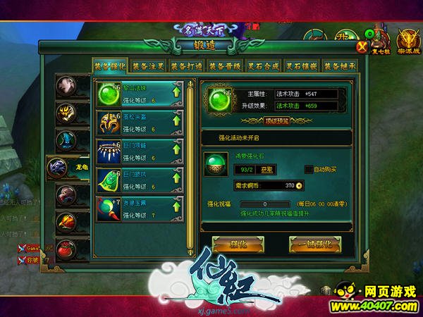 在角色一定等级后,做完主线任务有一个锻造功能的开启,这个功能不仅可以提升角色的装备等级,同时,仙宠的装备也是可以升级的。装备的加成成了仙宠提升战力的又一利器。提升仙宠的装备等级需要鸿蒙强化石和相应的铜币,装备加成等级越高,需要的道具和铜币就越多。仙宠装备提升,不仅能为你抵挡更多的伤害,还能为你砍出成吨的伤害量。鸿蒙强化石,它除了特定的FB掉落和天书奖励外,还能直接到商场购买。耐不住寂寞的高玩,可以直接去商场购买,不过小编要提醒你的是,装备的锻造也有福利时间哦,随时关注《仙纪》新闻,能让你省下一笔不少的开销,装备升级后,就开始驰骋《仙纪》吧!