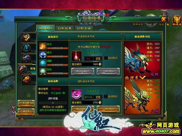 当你的角色收服第一只仙宠以后,系统就自动的为你开启了仙宠培养系统。仙宠主要有劲力、道力、洞察、生命四个属性。提升仙宠的战力,主要是通过仙宠修行丹和铜币来提升仙宠道行,每提升一次道行都会有相应的属性加成。再由仙宠造化丹来给仙宠升阶,如果你想让你的仙宠变得和你一样强,就不断的提升阶仙宠吧!对于仙宠道行的提升,仙宠修行丹是必不可少的道具,它除了特定FB掉落(随着FB的难度上升掉落的数量不提高)还有天书奖励中可以得到,如果你嫌这样太慢了,可以直接去商场购买,但是小编在此提醒大家,每天特定的时间段我们都有仙宠道行提升福利,只要注意世界公告,就能为你省下不少的仙券。如果你只是普通用户,小编建议你有选择性给仙宠升级道行。