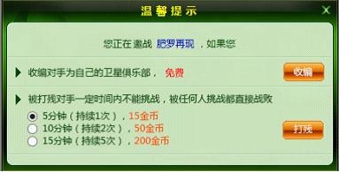相信你不远屈于别人脚下,成为卫星队的玩家怎么可能甘心呢?游戏为卫星队提供了翻身的好机会,可以使用反抗功能进行抵制,反抗胜利之后会恢复普通玩家的自由身份;如果反抗无效就会进入免战时间,10分钟内不能挑战主人队,乖乖地伺候主人吧!如果反抗不成功,玩家也可以使用赎身功能,花钱解除卫星身份,每次需消耗50金币。每天可使用3次赎身功能,用满3次后,本轮您将不能被收编成为卫星队,赎身之后,谁都动你不得。