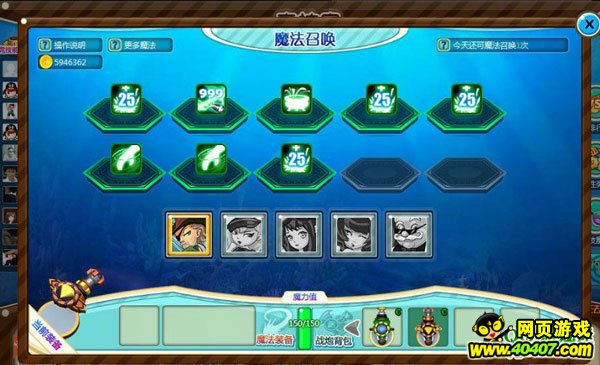 点击五位召唤师的头像,花费金币即可召唤出魔法。召唤师等级越高召唤出的高等级魔法的概率也就越大的。