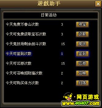 点击后即可显示当日可完成的一些游戏玩法,如下图所示: