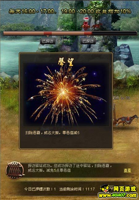 这如果就让你觉得非常有吸引力了,那说明你的胃口太小了。押镖不容易啊,所以游戏还准备了更多的奖励,在镖途中,玩家还可对驿站进行探访,可以获得各种收益,有几率获得黄金,原石,降低罪恶值等效果。是不是更有诱惑了呢?
