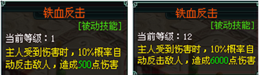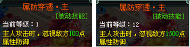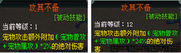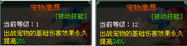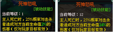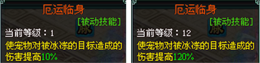 关键字:神魔仙界精灵 神魔仙界精灵天赋技能 开启条件:精灵灵性达到5级时开启,之后每提升5级自动激活一个新的天赋技能,天赋技能消耗一定数量的精灵技能残页和历练值,精灵技能残页可在幽林幻境副本中获得。 ![]() 技能简介: 共有12个天赋技能,每个技能最高可升至12级。每个天赋技能效果如下: ![]() 1. 铁血反击:主人受到伤害时,一定概率自动反击敌人,造成一定伤害; ![]() 2. 死神怒吼:主人死亡时,一定概率对击杀者造成对方当前生命值一定百分比的伤害(仅对玩家目标有效); ![]() 3. 怒火狂歌:主人受到伤害时,一定概率将受到伤害的百分比转换为生命值(被杀死时的攻击无效); ![]() 4. 厄运临身:使宠物对被冰冻的目标造成的伤害提高一定比例; ![]() 5. 普防穿透·宠:宠物攻击时,忽视敌方一定的普通防御; ![]() 6. 属防穿透·宠:宠物攻击时,忽视敌方一定的属性防御; ![]() 7. 攻其不备:宠物攻击额外附加一定的绝对伤害; ![]() 8. 宠物激昂:出战宠物的基础伤害效果永久提高; ![]() 9. 怒气加持:永久提高主人怒气上限; ![]() 10. 普防穿透·主:主人攻击时,忽视敌方一定的点普通防御; ![]() 11. 属防穿透·主:主人攻击时,忽视敌方一定的属性防御; ![]() 12. 伤害加持:永久提高主人一定的绝对伤害。 ![]() 更多精彩尽在40407神魔仙界专区 http://www.40407.com/smxj/