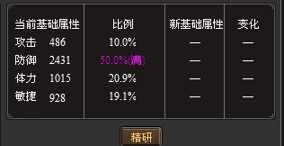 下面说车的1522(步骑一样),前面参考上面的5113方法,防御+敏捷,正数要,负数不要,直到防御45%左右,敏捷25%左右。到这一步就换种方法,防御+体力,正数要,负数不要,最重要的是攻击要保持在11%左右,最后微调的时候,攻击必须保持10%。(所谓“微调”,就是攻击49%左右,敏体20%左右)