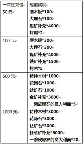 母亲节活动期间,推出充值大反馈活动,充值5元送5元,多充多得。新玩家向任意服务器首次充值,不限定金额都将额外获得大量钛矿石和爱情药水奖励,稀有武器军需,快速增加人口,是你征战路上的最强补助。