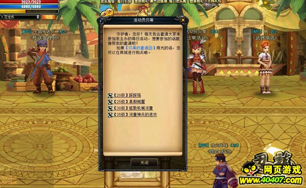 各位玩家们,有大部分正处于20-30级之间吧,一定都体会到了升级的不容易吧,往往任务都做完了才只到经验条的一半,这多么让人忧伤啊!为了升级是不是只能看准时机,参加限时活动,丰厚的经验奖励简直让人欲罢不能。但限时活动有固定时间,一旦错过了,今天就失去这个大号的机会了吗?当然不能如此,全新《忍龙》,重新定义每日活动,只要你手持邀请函,来到美丽的活动员贝蒂身边,更多的活动等你参加!