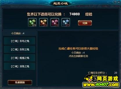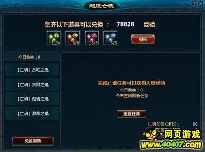 关键字:新仙剑超度亡魂 新仙剑超度亡魂介绍 新仙剑超度亡魂怎么玩 新仙剑有仙有鬼不出奇,不知玩家们还记不记得仙剑的僵尸呐,僵尸又丑又烦人,新仙剑的超度亡魂任务也也很烦。下面为你介绍新仙剑的超度亡魂任务: 新仙剑的超渡亡魂说它烦是因为它是每日任务而且要花一段时间。 打开超度亡魂任务面板选择免费刷新领取任务。