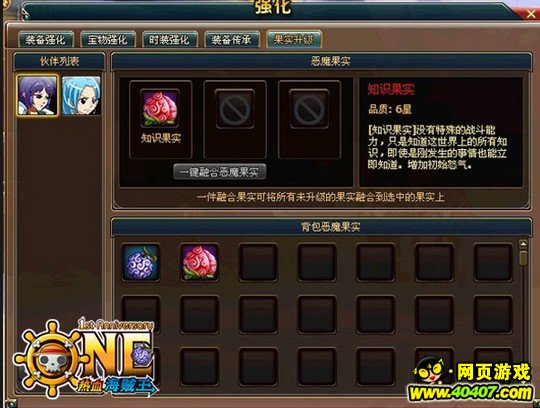热血海贼王周年庆大版本火爆开启,开放颇受海贼迷期待的恶魔果实全新玩法。海贼迷们可以通过活动来获取各种不同的恶魔果实,装备给那些没有恶魔果实能力的伙伴。想要让你的娜美、索隆、香吉士等人全部都成为能力者吗?那赶快来体验一下恶魔果实新玩法吧! 能力之源:恶魔果实树活动 跨服活动“恶魔果实树”是海贼们获取恶魔果实的主要途径。恶魔果实树开启后,海贼们可以通过点击活动中的恶魔之树图标进入,通过捐献装备、浇水、施肥等操作来获得贡献值,提升恶魔果实树的等级。在活动结束后,参与的海贼就能根据贡献值的排名来获得个人以及公会两项奖励,而恶魔果实就在奖励内容之中。 ![]() 化身能力者:装备恶魔果实 拿到恶魔果实了,是不是非常想要给自己的伙伴们装备上呢?获取到的恶魔果实不要轻易就装备到伙伴身上,不同的恶魔果实想要将果实能力最大化发挥出来,就需要放在最合适的伙伴身上,配合伙伴的技能才能发挥出最好的效果。如果已经装备的果实想要摘下来,就需要消耗一定的金币了,通过恶魔斗篷道具也能取下,各位海贼一定要慎重。 ![]() 能力开发:恶魔果实大强化 刚装备上的恶魔果实,虽然可以让伙伴具有不同的果实能力,可初始附件的属性也不是很高,想要让果实更加强悍,就需要对恶魔果实进行强化,提升果实等级。恶魔果实树玩法,也为海贼们开启了恶魔商店。海贼们在恶魔果实树活动中积累的贡献值就可以在商店中兑换不同星级的经验果实,然后通过果实融合来提升恶魔果实的等级。在果实树活动中,公会奖励也会有一定数量的经验果实发放。 ![]() ![]() 热血海贼王全新版本火爆开启,神秘恶魔果实系统火热上线!培育恶魔果实之树,化身恶魔果实能力者,伟大航道冒险,等你挑战! 更多精彩推荐: 更多精彩尽在40407热血海贼王专区http://www.40407.com/rxhzw/ |