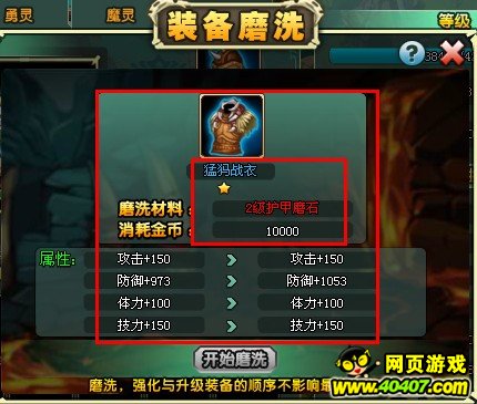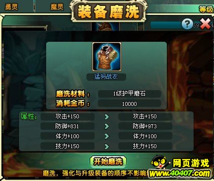 ![]() 磨洗界面,点击开始磨洗即可今昔装备磨洗,提升属性,进而提升战力!