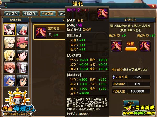 热血海贼王端午签到送好礼活动火热进行中,连续签到天数越多,能够领取到的端午礼包就越丰厚!为了迎接更多海贼迷们的到来,热血海贼王日前开放全新版本,精彩新内容火爆上线,新时装、新玩法引燃海贼冒险激情!加入战斗,和草帽海贼团一起,迎接新挑战吧! ![]() 礼品屋开启新功能 时装可分解 相信海贼们在热血海贼王以前的活动中,有很多都已经获得到了不同的时装,主角在装备时装后,不仅能改变外形,以全新炫酷的造型登场,在城镇以及战斗中更加拉风;同时还能获得额外的属性加成。在日前的更新中,海贼们已经可以在城镇场景的礼品屋中,对多余的时装进行分解。时装分解后,就能获得可以用来强化的时装水晶。 ![]() 荣誉商城兑换水晶 开启时装强化 想要获得时装水晶对时装进行强化,只靠分解是还是不够的。热血海贼王在海贼战场开启的荣誉商店中,也开放了时装水晶的兑换。海贼们只需要多参与海贼战场,积累战场荣誉,就能在荣誉商店中兑换时装水晶。当然,战场荣誉的用途也很多,商店中有很多极品道具都可以通过荣誉进行免费兑换! ![]() 炫酷强力两不误 强化属性大提升 准备好足够的时装水晶和贝里,就可以对自己的时装进行升级了!海贼们可以点击游戏界面右下角的强化按钮,选择时装强化标签来进入强化界面。点击想要强化的时装后,就能看到时装强化前后的属性对比了。随着时装强化等级的提升,能够附加给海贼们的属性也就越多。大幅度提升战斗力,拉风强悍两不误! ![]() 海贼题材动漫页游经典之作!热血海贼王最火热、最激情的冒险之旅重磅开启,全新内容邀你第一时间体验!和草帽海贼团一起,出发吧,向着伟大航道! 更多精彩推荐: 更多精彩尽在40407热血海贼王专区http://www.40407.com/rxhzw/热血海贼王交流群:251704945 |