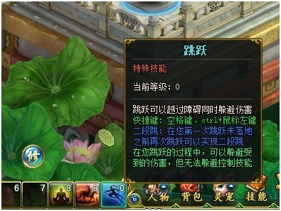 在游戏中会有一个这样的技能,叫做跳跃,通过按下空格键或者CTRL键+鼠标来进行启动,不过就笔者测试来说,空格键更加的方便,而CTRL+鼠标来控制的则会跳的更远,这个技能除了可以做出比较快速的移动动作之外,还是可以躲避某些技能的哟,当然还是有一些不能躲避的,比如控制技能。