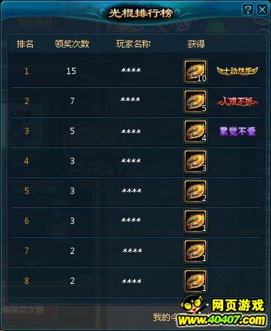 关键字:新仙剑光棍乐翻天 新仙剑集字兑奖玩法 新仙剑获得称号攻略 11月5日版本更新后,《新仙剑》团队为籼米们精心准备了“光棍乐翻天”活动——通过抽奖的方式组合不同的仙剑人物(仙剑中的千年光棍),根据组合结果可领取仙剑伙伴包、红色信物碎片、金色信物碎片等丰厚奖励,这个光棍节一起乐翻天! 活动时间:2013年11月5日版本更新后——11月19日24点 【“你”“是”“个”“好”“人” 集字兑奖】 活动期间,通过收集普通副本、英雄副本、组队副本以及竞技场掉落的“你”“是”“个”“好”“人”这五个大字,即可兑换一次领奖机会。 【夺千年光棍 赢专属称号】 在“光棍乐翻天”活动中,根据领奖次数,排名前十的玩家还会荣登光棍排行榜,排名前三的玩家还能获得持续24小时的光棍专属称号哦! 排名第一:金色称号“十动然拒”——获得后,生命属性提升3%、攻击属性提升3%、防御属性提升3%! 排名第二:红色称号“人艰不拆”——获得后,生命属性提升2%、攻击属性提升2%、防御属性提升2%! 排名第三:紫色称号“累觉不爱”——获得后,生命属性提升1%、攻击属性提升1%、防御属性提升1%! ![]() 更多精彩推荐: