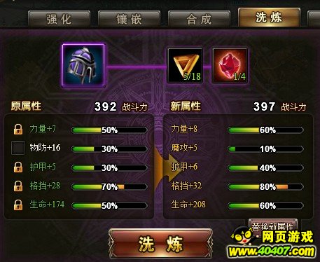 装备可以通过强化,洗炼和镶嵌宝石来提高装备战斗力,还可以通过,占星、勋章(战场获得)、龙血等系统提升。