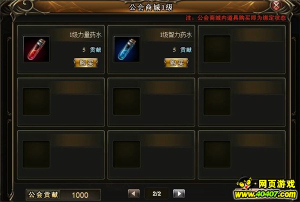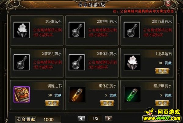 部分物品需要公会商城等级达到2级开启。