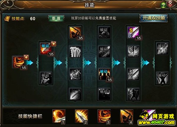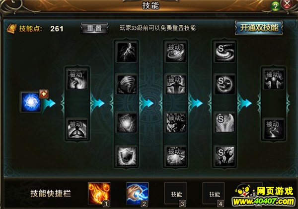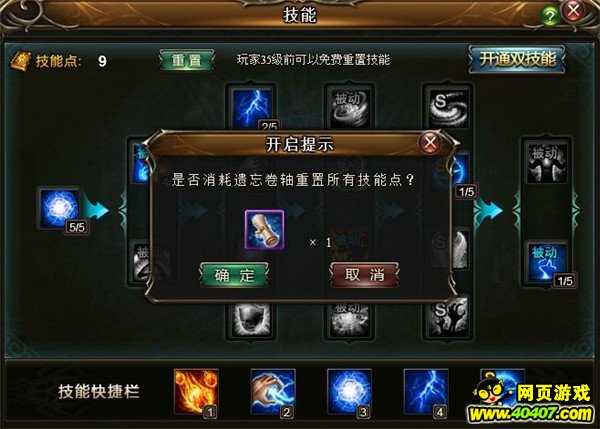 35级之前可以免费重置技能,35级以后需要消耗一个遗忘卷轴重置技能。