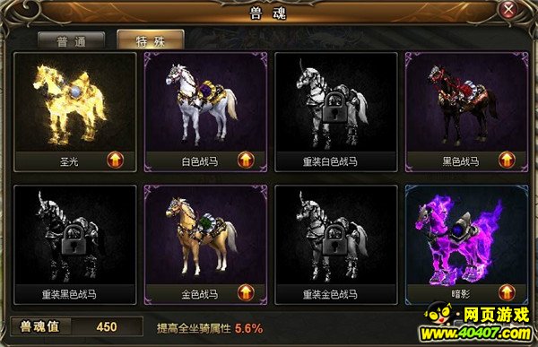 当你收集的坐骑数量越多,兽魂值就越高,兽魂值可以提高坐骑属性的百分比。
