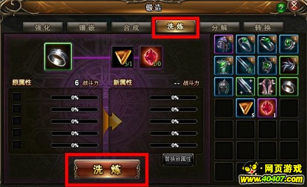 洗炼装备需要洗练石,洗练石通过分解装备获得,商城有出售。