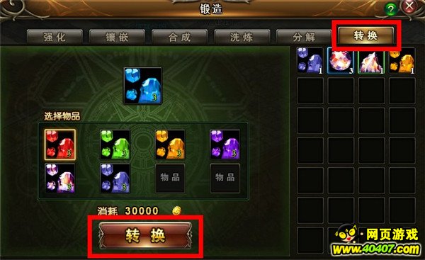 自己用不到的宝石可以消耗一定的金币转换成自己需要的宝石。