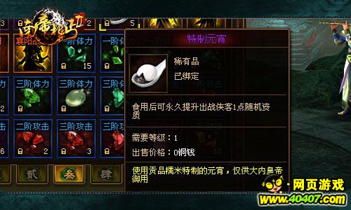 如果说51wan《南帝北丐2》节日的特殊道具都是在日常活动区域内使用的。那么即将上线的特殊时效道具让你可以在战斗中使用,瞬间增加战力,展现惊天逆袭。时效道具主要增加角色与侠客的体力、攻击、防御等方面。如果在51wan《南帝北丐2》战斗中,你被步步逼入险境,不妨利用此道具扭转战局。