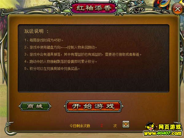 4)红袖添香每天可免费玩2次。每天24点重置游戏次数。