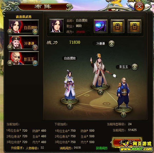 通过不同侠客摆放在阵法的不同位置产生不同的加成效果,可根据不同战局调整阵法布置。