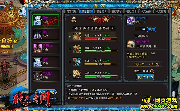 在魂宠界面,每个魂宠的边上都有三个标志,分别为成长阶段、潜力境界与技能槽。而神裔魂兽就与第二个标志潜力境界有关。不同魂宠本身的潜力属性差异并不大,极品的紫色魂宠也在1000左右,但为什么紫色魂宠会比其他魂宠受欢迎呢?差别就在潜力境界上了。