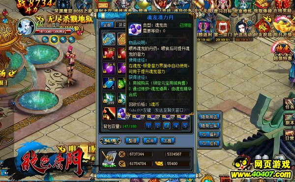想要提升魂宠潜力,那就必须使用魂宠潜力丹,每次升级潜力都会有失败的可能,越高的潜力提升,成功率也就越低。每颗潜力丹在成功的前提下能提升潜力1~3,失败则会减少1,达到新的潜力境界时,将开放更高的潜力上限,失败不会掉出下限。使用潜力保护符可以保证提升失败后潜力不降低。