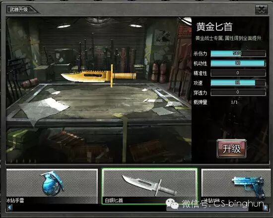 天梯武器有多厉害,战士你可知?最新版本开放的天梯武器,充分满足了手枪战、近战、雷战的需要。手拿紫金USP,兜揣冰钻小手雷,再挥一挥小刀,你不称霸战场谁同意!注意的是天梯未到达的段位,武器也是拒绝升级的。