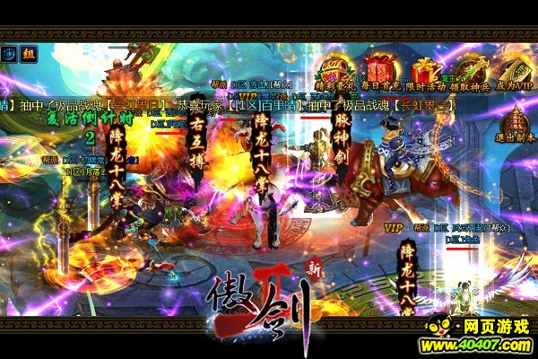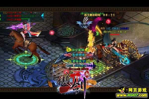 各位豪侠是否早已厌倦传统的3V3跨服争霸战?这一次,《傲剑2》将对经典的3V3跨服战进行革新,推出全新的跨平台PK模式,使来自不同平台的各路高玩有机会相聚在同一片擂台上相互切磋、比拼较量。届时,玩家们将根据战斗力的高低随机匹配对手,而后组队与对手展开一场惊心动魄的3V3厮杀。防守反击、直捣黄龙、游击逆战、正面突袭等多种PK计策都将由你们自主选择,而你又能否带领团队走向胜利呢?