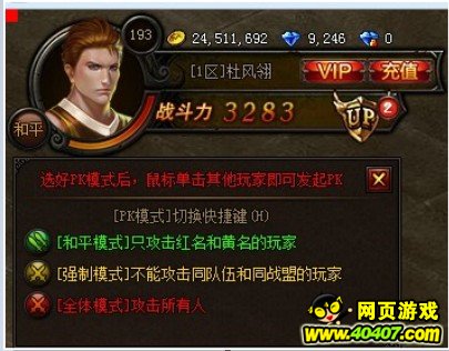 除此以外,玩家可更改PK模式,对其他玩家主动发起攻击。