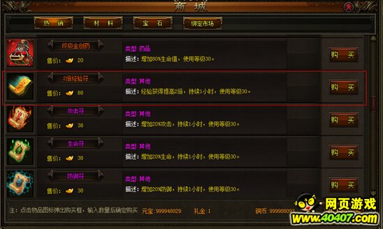 给角色服用特级经验丹将马上获得海量经验,经验丹可以在商城中直接购买,也会在副本中掉落。对于迫切需要等级的玩家,使用经验丹自然是个不错的选择。