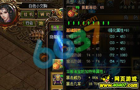 在赤月世界里,每个职业英雄的输出都会有一定概率出现暴击,只是暴击出现的概率和暴击的效果不同,这就取决于一样装备了——法宝,这里可不是什么考试的法宝,考试的法宝就是背了,而赤月世界里的法宝则是为了增加攻击而存在的,有道是,不出手则已,一出手就毙命,描述的也大概是如此了。