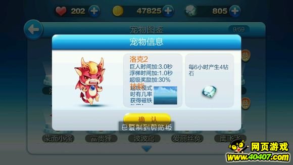 本文关键字:天天酷跑最新宠洛克抢先曝光 天天酷跑最新宠洛克 天天酷跑洛克王国宠物 天天酷跑爱心宠物登场 《天天酷跑》炫飞版已经在安卓平台更新,新游戏中更新了新模式,新人物新装备,但是却没有新宠物。后来在玩家们的强大能力发挥下,果然有玩家曝光了三只新宠物洛克1、洛克2、洛克3,接下来就和小编一起来看看新宠物吧。 ![]() 宠物介绍: 三只宠物由于目前外形应该还没有确定,所以使用的是宠物神气牛牛的外形,看来是完全不想让我们知道新宠物是什么呀,不过我们还是能窥视到新宠物的技能增益的哟! ![]() 洛克1技能: 增益:冲刺时间+3秒,浮梯时间+1秒,飞行得分+30%;技能:超级奖励模式有几率让角色变大;产出:每8小时生888金币; ![]() 洛克2技能: 增益:巨人时间+3秒,浮梯时间+1秒,超级奖励+30%;技能:超级模式时有几率获得磁铁效果;产出:每6小时产生4钻石。 洛克3技能: 增益:飞星得分+300%,浮梯时间+1秒,踩怪得分+60%;技能:PVP时获得分数加成12%;产出:每6小时产生5爱心。 宠物由来猜想: 大家可以回忆一下里约2电影上映时,天天酷跑出了一批里约版宠物,布鲁、珠儿等纷纷亮相。此次名曰洛克,目前又是洛克王国3上映之际,很难不让大家猜想这次新宠物将会是洛克王国中的宠物,至于猜测是否准确,大家和小编一起期待吧! 总结: 这次的宠物还是很给力的,估计大家的荷包又要憋下去了,不过还是希望这次的宠物可以早日出现。 精彩推荐: 更多精彩内容尽在40407天天酷跑专区http://www.40407.com/ttkp/ |