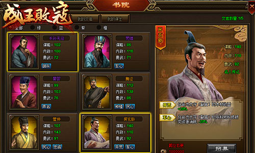 要打江山,单枪匹马怎能行?《成王败寇》里的名将系统让你将天下名士、历代将相尽收囊中,为我所用!文有晏婴、管仲、房玄龄;谋有张良、诸葛亮、郭嘉;武有关羽、秦琼、吕布……内有定国安邦、出谋划策,外有保家卫国、上阵杀敌!瞧美髯公千里走单骑,看郑国公直言进谏辅霸业!真是秦皇汉武略输文采,唐宗宋祖也要稍逊风骚。