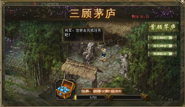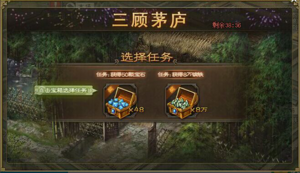 【福利大挑战】三顾茅庐,宝箱豪礼! 全新三顾茅庐,任务轻松更简单,奖励丰厚大福利。要镔铁,有镔铁;要宝石,有宝石。选择你想要的,完成挑战,就能拥有! 活动范围:10月28日(含)之前已开所有服 活动时间:11月4日0点至11月5日24点 活动玩法:1. 选择任务类型 活动共分为:镔铁、宝石两类任务。 *重要提醒:第一次选定任务类型后,之后的所有任务都是该类型。(例如:第一次选了镔铁任务,之后可接受的都是镔铁任务,活动奖励也都是镔铁) ![]() 2. 按任务目标,完成任务,收获奖励 1)免费任务:共有3轮,每完成2个任务(每次任务可二选一)为1轮。完成1轮至下一轮会有4小时的CD(可使用金币直接清除) 2)3轮免费任务都完成后,可以使用金币额外购买最多6个任务。金币所购任务为随机刷取,且不能二选一。 ![]() 40407攻城掠地专区地图