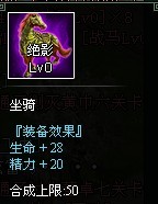 传说此战骑,貌似也是老曹家的,就冲这高精力,高合成上限,骚年们,在搞到的卢宝宝之前,书生医生的首选必然是此战骑。当然,在搞到爪黄之前,此战骑也是所有dps的首选。不过,此战骑,只作为过度之用,舍得的童鞋们,可以适量强化两匹,不推荐大量强化。除非是高富帅及那些传说中的二代···钱多的没地儿花的,就另当别论。