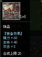 此物精力及生命与太平经相比,稍逊一筹,但是,却多了另一神属性···攻击···作为后期的顶级装备之一,无可厚非的,是DPS的首选。出产量较高。值得拥有。产地也是同太平经一样在刘备十,不过此物孙权十,也有出产。